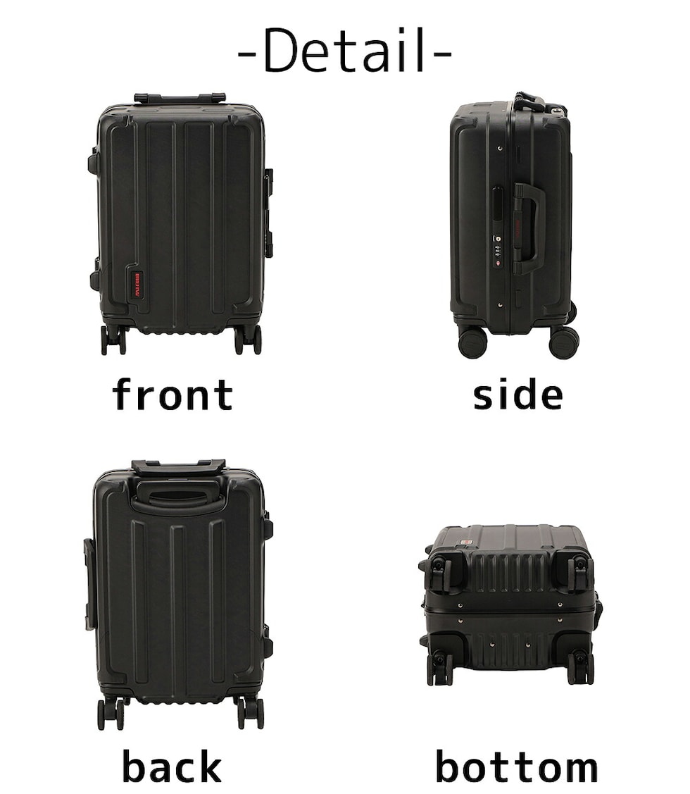 | 備考 | 【メイン開閉】フレーム 外側/ TSAロック(ダイヤル式) 内側/ ▼前面側収納スペース 着脱可能フックカバー仕切り(ファスナーポケット×1、メッシュファスナーポケット×2、着脱可能キーリング×1) ▼背面側収納スペース ファスナーカバー仕切り(ファスナーポケット×1、メッシュファスナーポケット×2) 付属/ クリアポーチ×1 アルファベットシール×1 ・国内100席以上機内持込み対応 ・4輪(双輪キャスター) ・TSAダイヤルフレームロック(鍵は付属しません) ・フックカバーはハンドル付きで、ウォールポケットとして使用可能 ・60mmホイールを採用 キーワード : 海外出張 ビジネス 旅行 通勤 普段使い タウンユース 機内持ち込み 35L 1泊 2泊 2~3泊 フレームタイプ TSAロック ダイヤル式 TSロック 60mmホイール 日乃本錠前 耐衝撃 耐熱 難熱性 丈夫 割れにくい ポリカーボネイト 軽量 メンズ レディース 男女兼用 シンプル 無地 モノトーン ワントーン 大人 シック ブラック 黒 プレゼント ギフト ラッピング ラッピング可能 ビジネス 学生 ブランド ポイント消化 ニューバッグワカマツ ニューバックワカマツ | ||