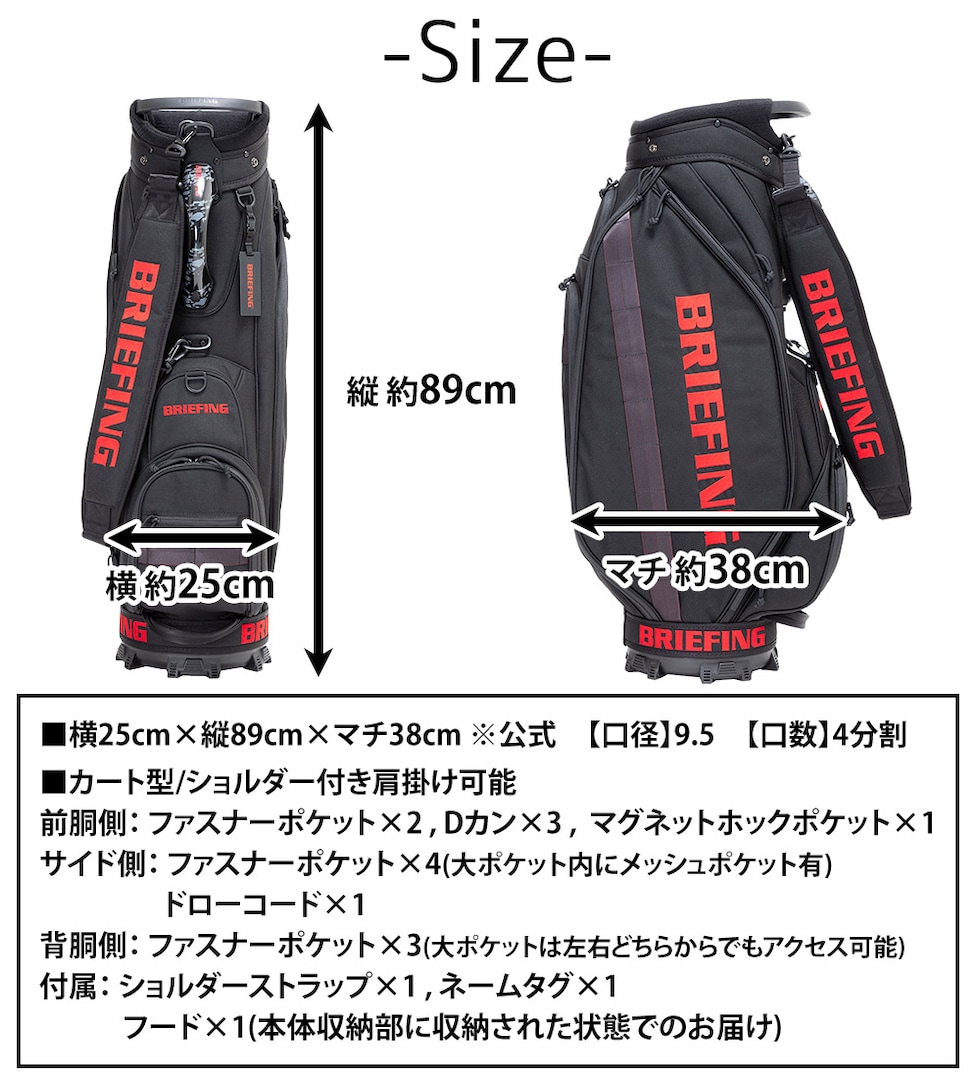 | 備考 | ■カート型 ショルダー付き肩掛け可能 ■前胴側 ファスナーポケット×2 マグネットホックポケット×1 Dカン×3 ■サイド側 ファスナーポケット×4(大ポケット内にメッシュポケット有) ドローコード×1 ■背胴側 ファスナーポケット×3(大ポケットは左右どちらからでもアクセス可能) ■付属 ・フード×1(本体収納部に収納された状態でのお届け) ・ショルダーストラップ×1 ・ネームタグ×1 キーワード: ブリーフィング 正規品 STANDARDシリーズ 10代 20代 30代 40代 50代 ゴルフ プロ アマチュア グランドゴルフ ゴルフコンペ 大会 練習 趣味 健康 キャディバッグ キャディーバッグ カートキャディバッグ 46インチ 軽量 軽い 大容量 高級 多機能 ショルダーキャディバッグ 肩掛けキャディバッグ 持ち運び便利 長持ち 自立 ラウンド プレゼント ギフト メンズ レディース 男性 女性 ポイント消化 スポーツ アウトドア アクティビティ カッコイイ カッコいい 贈り物 使いやすい 初心者 定番 オールシーズン ベーシック 高耐久 保冷 撥水 男性用 女性用 おしゃれ シンプル ニューバッグワカマツ ニューバックワカマツ | ||