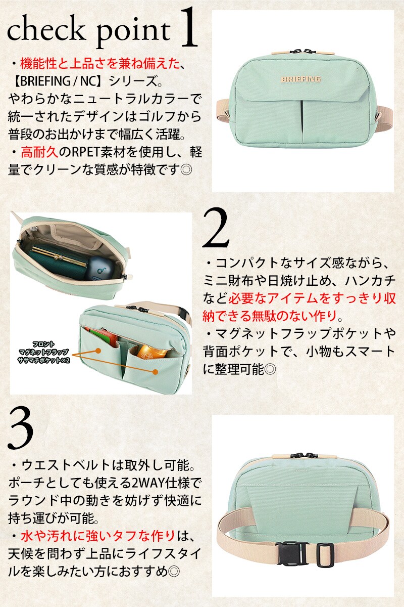 ブリーフィング ウエストバッグ ポーチ A6対応 2WAY BRIEFING NCシリーズ スクエアウエストポーチNC BRG261E07 レディース メンズ 送料無料 誕生日プレゼント ギフト 正規代理店 1.ベージュ -021