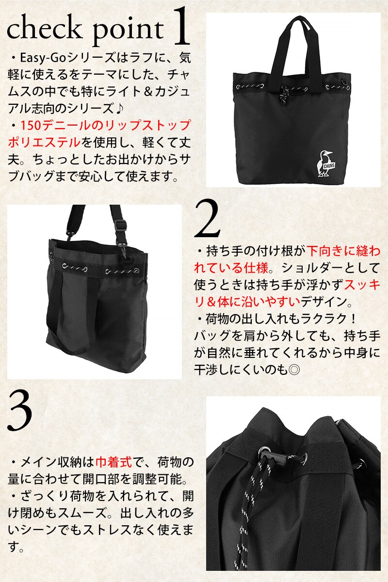 チャムス バッグ トートバッグ ショルダーバッグ 巾着バッグ CHUMS イージーゴー3ウェイトートバッグ 17L A4 CH60-3297 メンズ レディース キッズ 誕生日プレゼント ギフト 【正規代理店】 2.ライトグレー -603297g020ラッピング可能