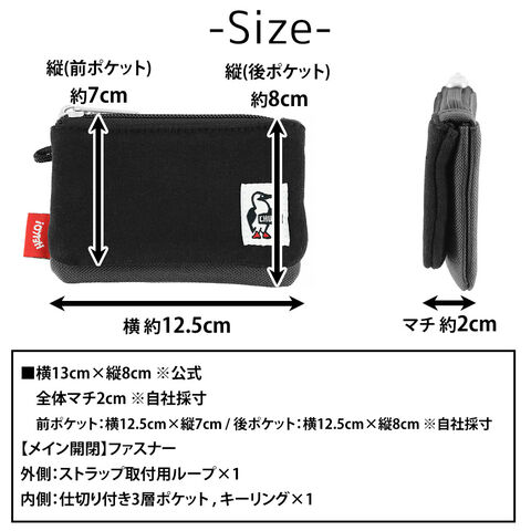 | サイズ(約) ※当店実寸値 | 公式サイズ 横13cm×縦8cm ▼自社採寸サイズ ・前ポケット横12.5cm×縦7cm ・後ポケット横12.5cm×縦8cm ・全体マチ2cm | ||