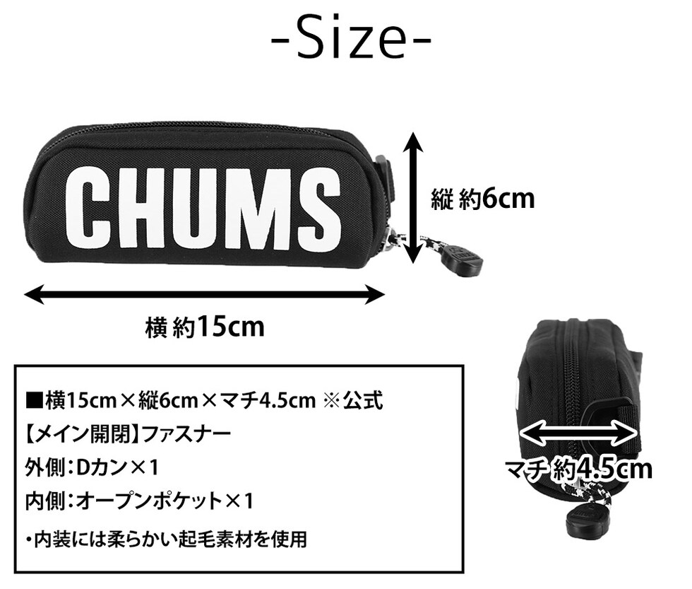 メガネ・サングラスケースとしてもペンケースとしても使いやすい、CHUMSロゴモチーフの小物ポーチ。