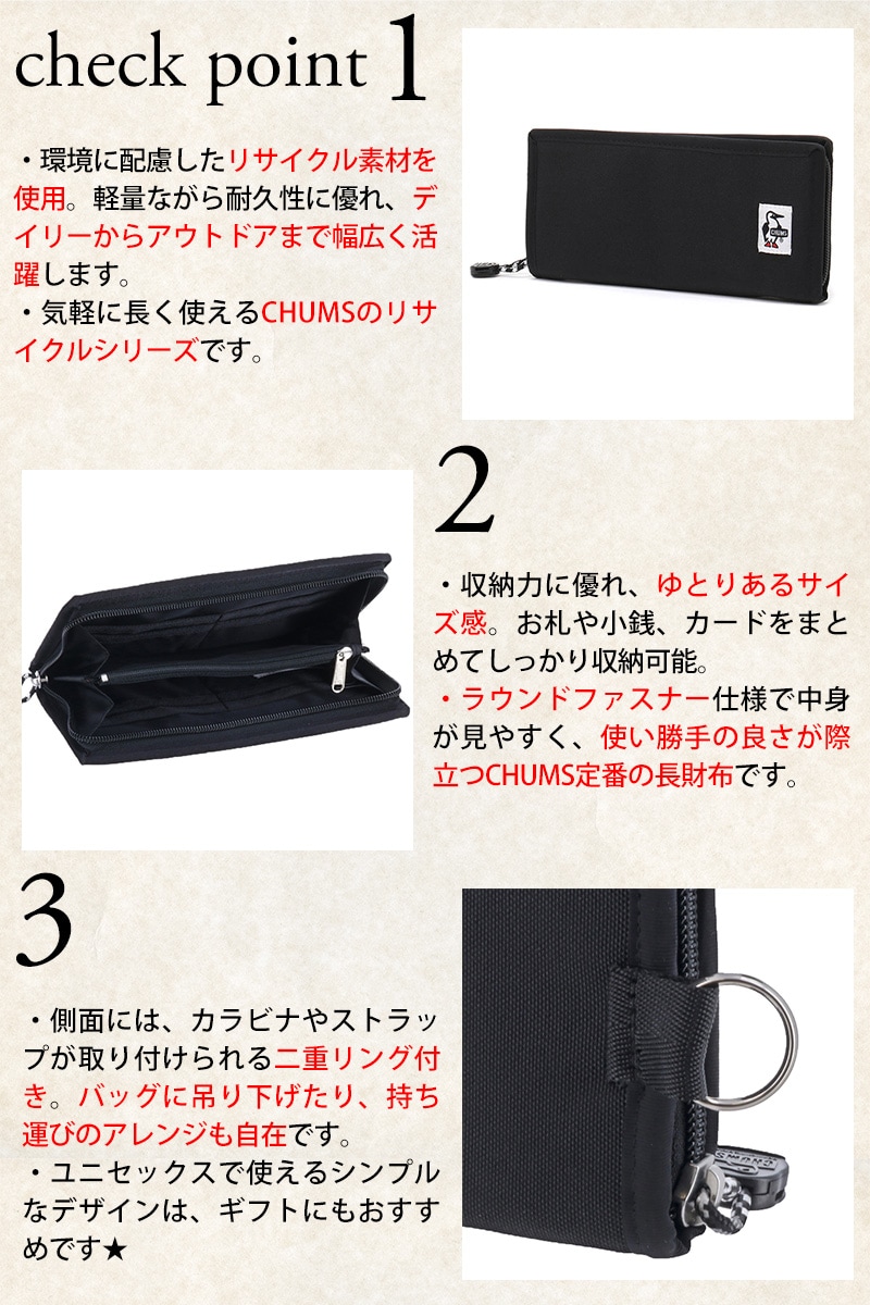 チャムス 財布 長財布 ラウンドファスナー 小銭入れあり CHUMS リサイクルビルフォルドウォレット CH60-3568 メンズ レディース キッズ 誕生日プレゼント ギフト ラッピング無料 正規代理店 2.ネイビー -99x603568n001