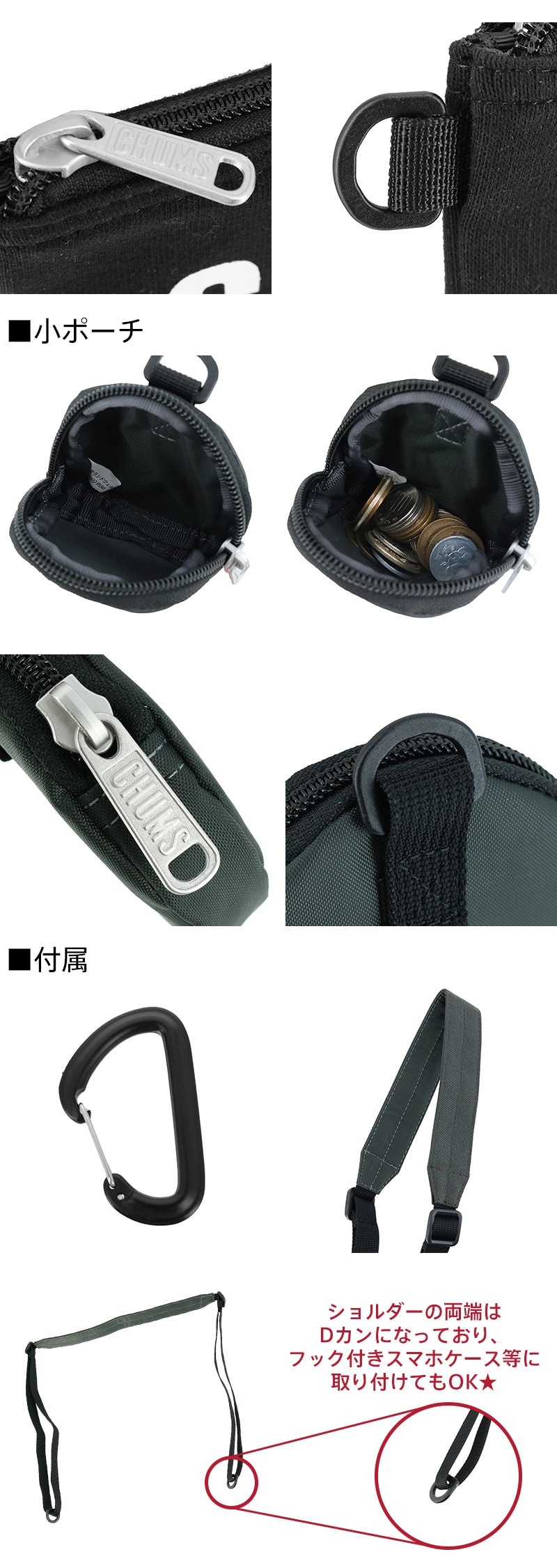 ・ポーチはカラビナで取り外しでき、単品でも使用可能