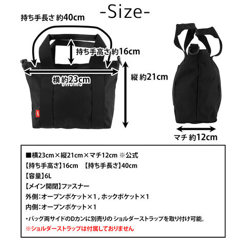 | サイズ(約) ※当店実寸値 | 公式サイズ 横23cm×縦21cm×マチ12cm 【持ち手高さ】16cm 【持ち手長さ】40cm 【容量】6L | ||