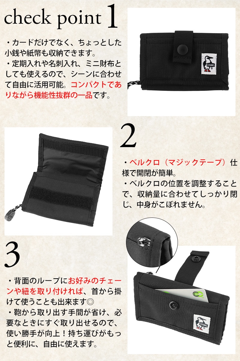 カードも小銭もまとめて持ち歩ける、チャムスの万能カードケース。