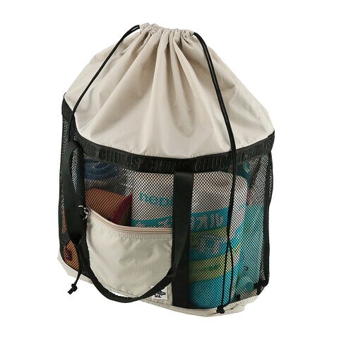 水辺のアクティビティやアウトドアで活躍する、メッシュ素材のトートバッグ。