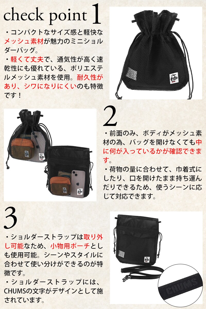 チャムス バッグ ショルダーバッグ メッシュ アウトドア 斜めがけバッグ CHUMS メッシュミニバッグ 3L A5サイズ CH60-3931 メンズ レディース キッズ 誕生日プレゼント ギフト 【正規代理店】 2.グレージュ -603931g057ラッピング可能