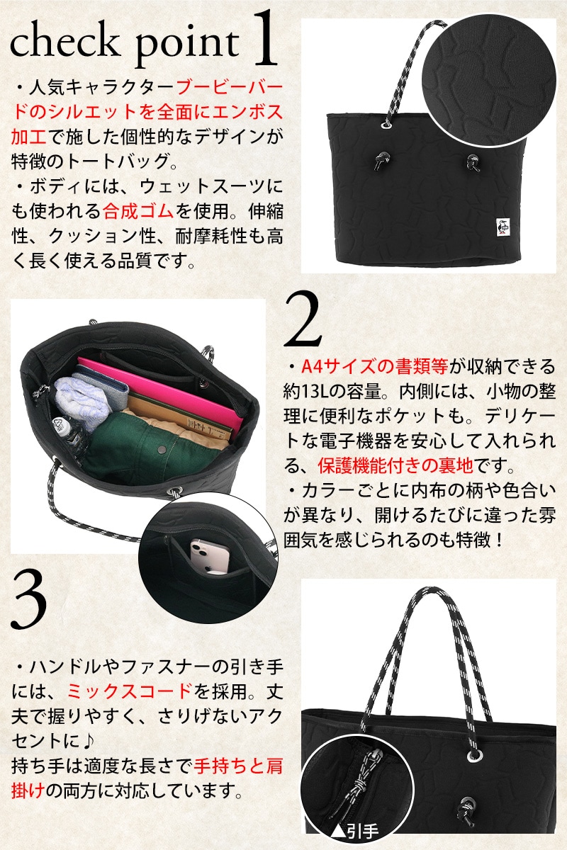 CHUMSの象徴ブービーバードが全面にあしらわれた『ブービーエンボストートバッグ』