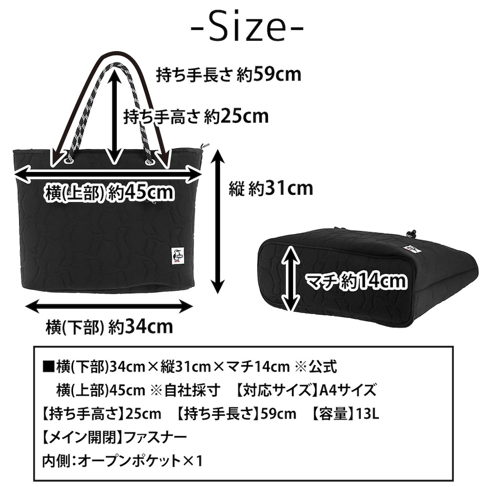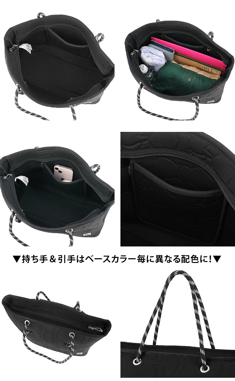 | サイズ(約) ※当店実寸値 | 公式サイズ 横(下部)34cm×縦31cm×マチ14cm 自社採寸サイズ 横(上部)45cm 【持ち手高さ】25cm 【持ち手長さ】59cm 【容量】13L 【対応サイズ】A4サイズ | ||