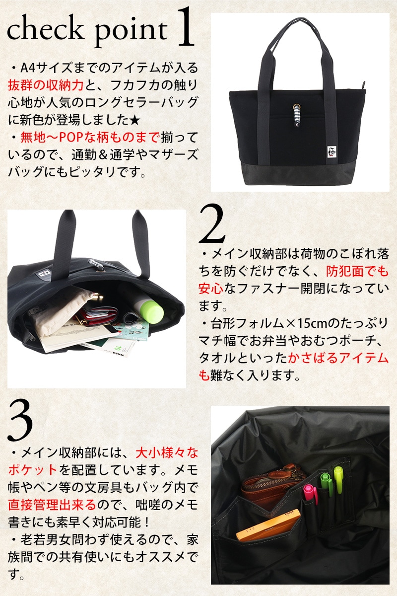 クラシックなデザインが人気のCHUMS定番トートバッグです。