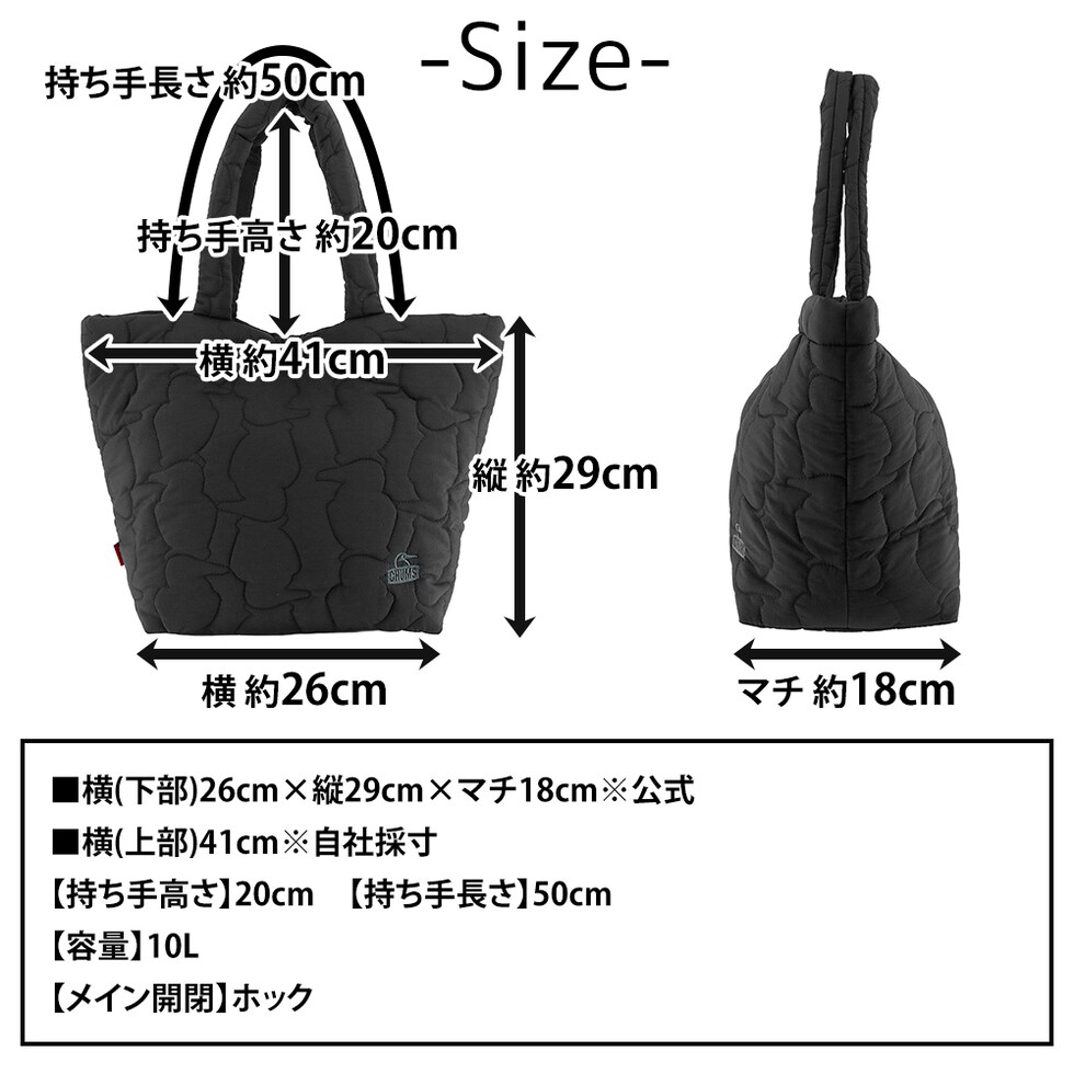 | サイズ(約) ※当店実寸値 | 公式サイズ 横(下部)26cm×縦29cm×マチ18cm 自社採寸サイズ 横(上部)41cm 【持ち手高さ】20cm 【持ち手長さ】50cm 【容量】10L | ||