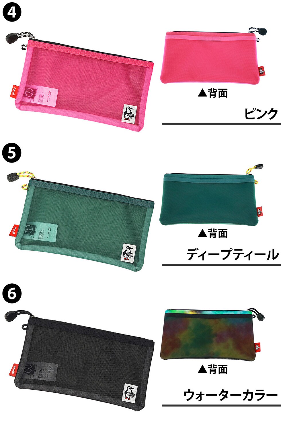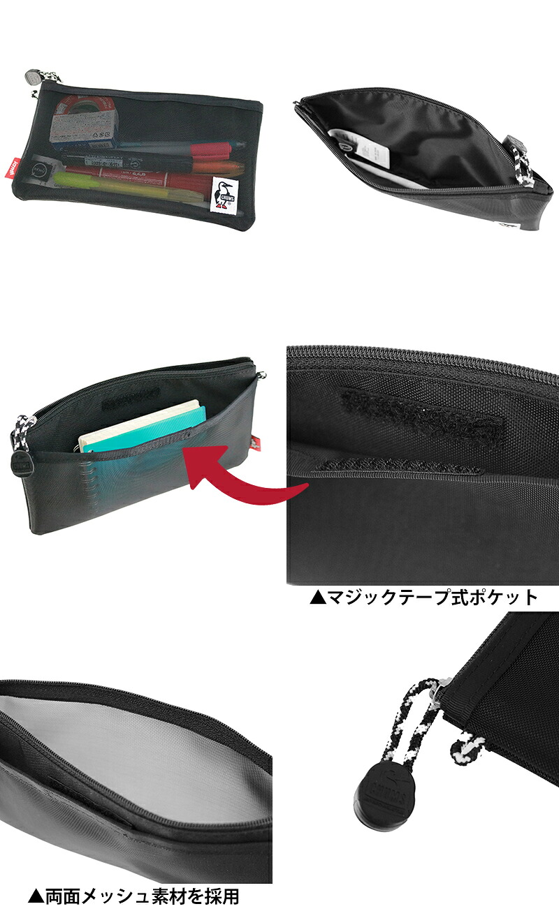 チャムス ポーチ 横長 ペンケース 文房具 便利 収納 メッシュ 軽量 CHUMS リサイクルオブロングケース CH60-4064 メンズ レディース キッズ 誕生日プレゼント ギフト ラッピング可能 正規代理店 4.ピンク -604064r018