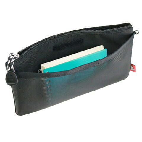 横長フォルムでペンやマーカー、定規などの文房具をすっきり収納できるため、ペンケースとしてはもちろん、ガジェット小物の整理にも便利。
