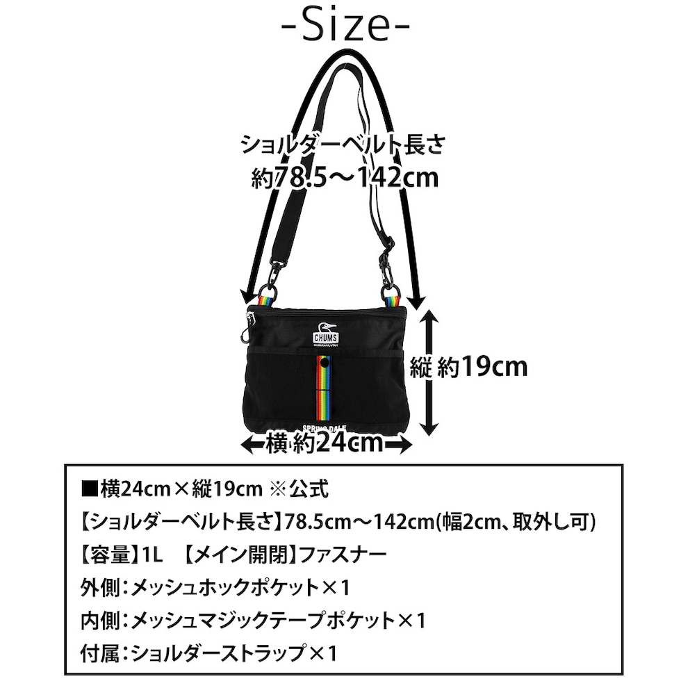 | サイズ(約) ※当店実寸値 | 公式サイズ 横24cm×縦19cm 【ショルダーベルト長さ】78.5cm~142cm(幅2cm、取外し可) 【容量】1L | ||