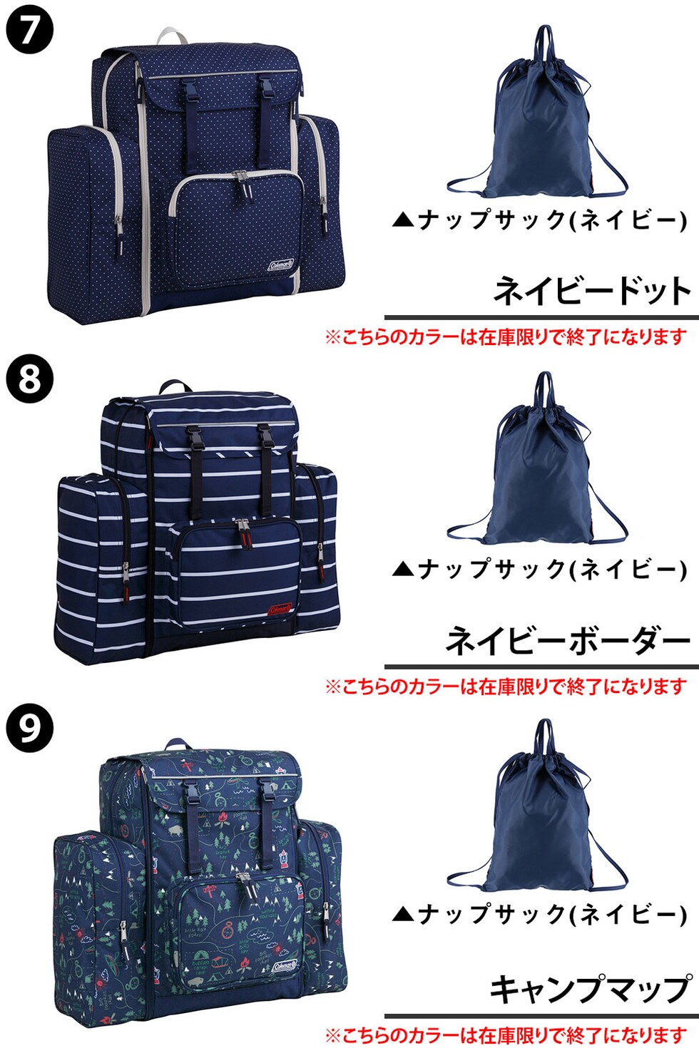 | カラー | 1.ブラック(-99x32974) 2.ビー・ア・キャンパー(-2213924) 3.マーモットスモウ(-2213926) 4.フィールカンザス(-2213934) 5.オデカケ(-2213925) 6.グリーン(-99x32973) 7.ネイビードット(-99x32975) 8.ネイビーボーダー(-99x32977) 9.キャンプマップ(-99x32978) | ||