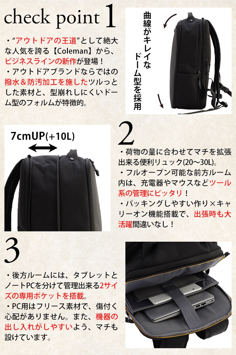 コールマン バッグ リュックサック デイパック バックパック ビジネスリュック Coleman アウトビズ アウトビズドーム 30L 20L メンズ レディース プレゼント 【正規代理店】 ブラック -2213970ラッピング可能