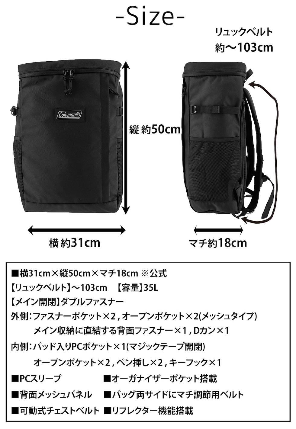 コールマン バッグ リュックサック スクエア バックパック デイパック Coleman シールドライト35 35L B4 A4 B5 メンズ レディース キッズ 誕生日プレゼント 【正規代理店】 ブラック -2207124ラッピング可能