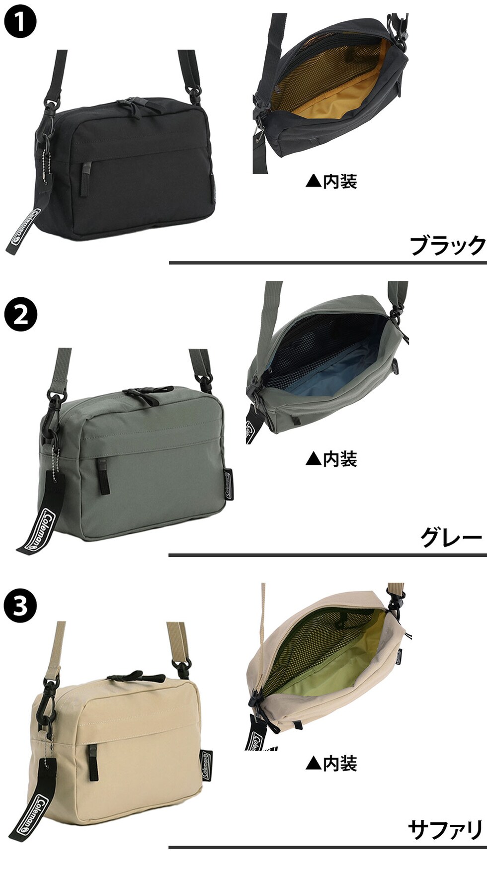 | 備考 | 【メイン開閉】ダブルファスナー 外側/ ファスナーポケット×1 内側/ メッシュファスナーポケット×1(キーフック×1) 付属/ ショルダーストラップ×1 コールマンリボンストラップ×1 キーワード : ショルダーバッグ 2WAYバッグ ポーチ ミニバッグ ミニショルダー サブバッグ 4L 小さめ コンパクト B6収納 通勤 通学 普段使い 旅行 サブバッグ トラベルポーチ アウトドア タウンユース メンズ レディース 男女兼用 男性 女性 5000円以下 コスパ 軽量 ナイロン 撥水 耐久性 ショルダー着脱可能 メッシュポケット 収納力 シンプル 無地 ストリート ワントーン ブラック 黒 プレゼント ギフト ラッピング ラッピング可能 ビジネス 学生 ブランド ポイント消化 ニューバッグワカマツ ニューバックワカマツ | ||