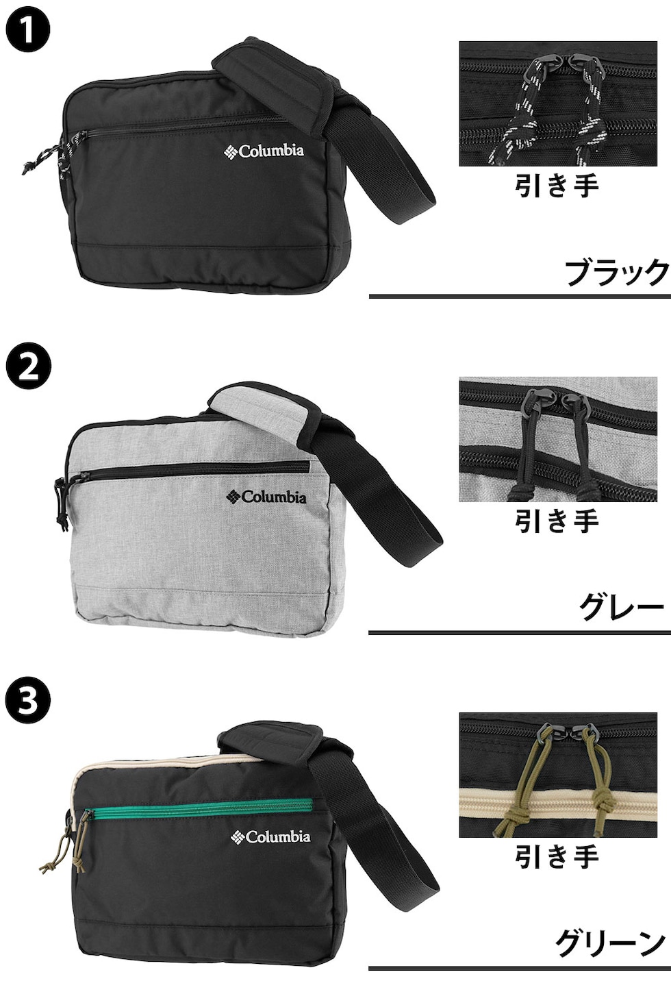 | カラー | 1.ブラック(-10) 2.グレー(-12) 3.グリーン(-50) | ||