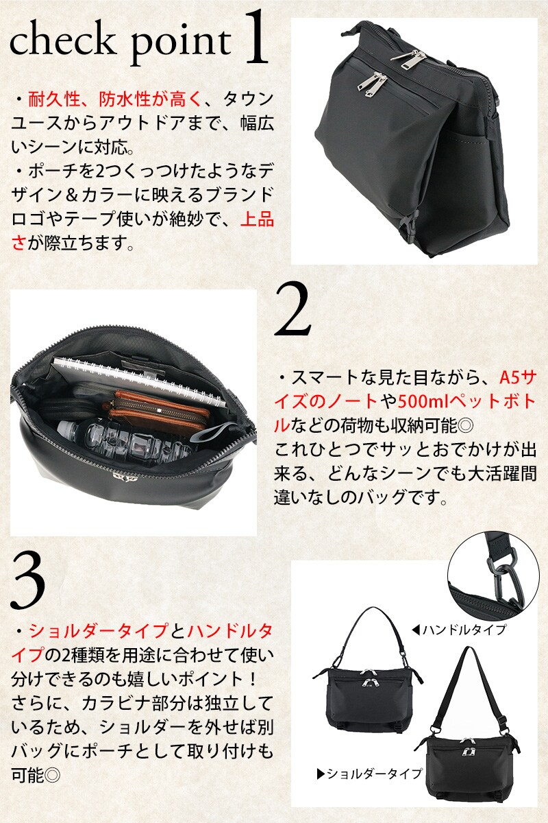 フォーマル&カジュアル+アウトドアにもマッチするシックなショルダーバッグ。