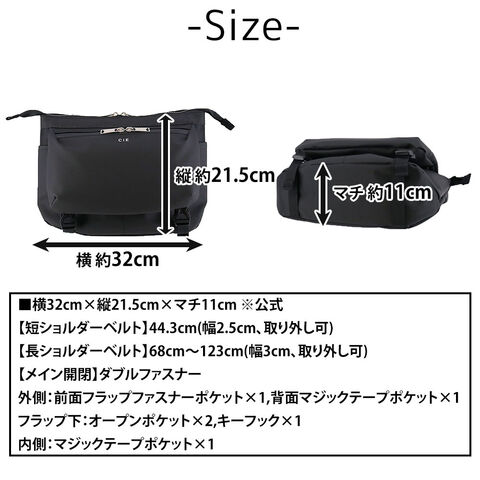 | サイズ(約) ※当店実寸値 | 公式サイズ 横32cm×縦21.5cm×マチ11cm 【短ショルダーベルト】44.3cm(幅2.5cm、取り外し可) 【長ショルダーベルト】68cm~123cm(幅3cm、取り外し可) | ||