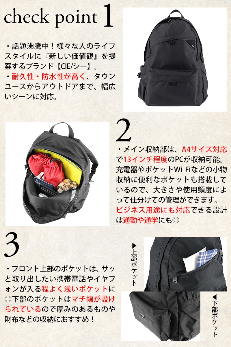 | 備考 | 【メイン開閉】ダブルファスナー 外側/ ファスナーポケット×3 調整可能オープンポケット×1(Dカン×1) 内側/ PCポケット×1(13インチ) オープンポケット×1 (完全防水ではないため、縫製部分である針穴からなどの水の侵入は防ぐことはできませんのでご注意ください。) キーワード: 10代 20代 30代 40代 18L 普段使い A4サイズ 対応 PC収納 13インチ ツーリング 自転車 バイク アウトドア ハイキング フェス 街 男女兼用 ユニセックス シンプル 無地 ロゴ ワンポイント 撥水 防水 シック 軽量 軽い 新卒 入学 祝い 誕生日 記念日 お揃い 日本製 国産 彼氏 彼女 恋人 プレゼント ギフト メンズ レディース 男性 女性 通勤 通学 ビジネス 学生 ブランド ポイント消化 ニューバッグワカマツ ニューバックワカマツ | ||