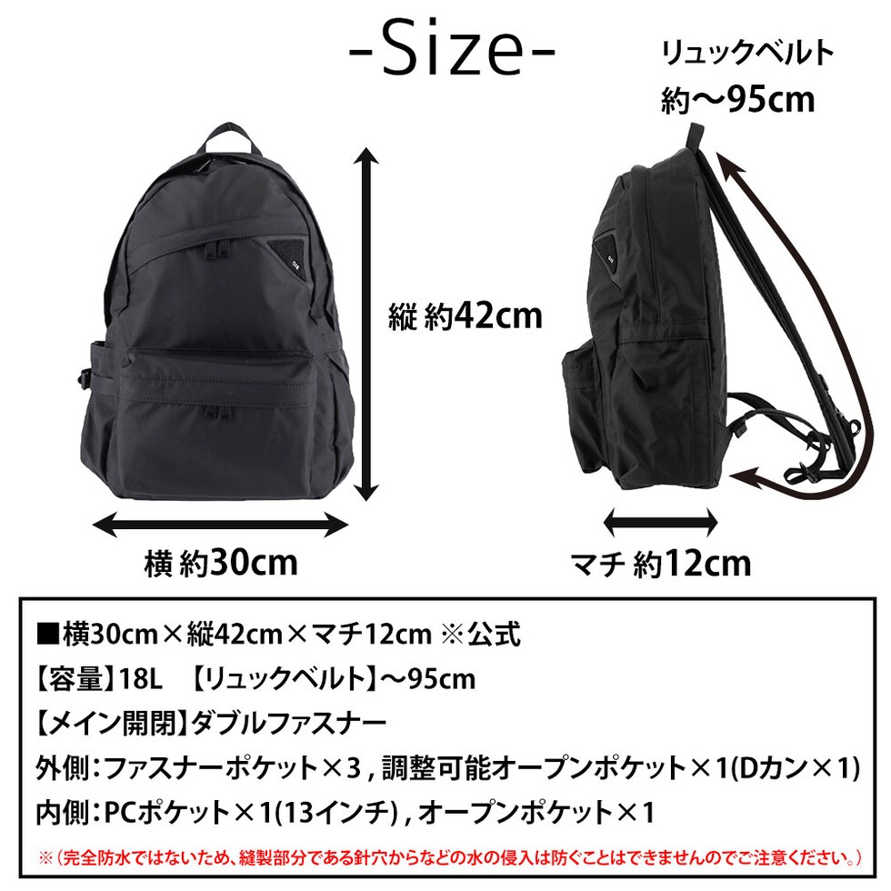 | サイズ(約) ※当店実寸値 | 公式サイズ 横30cm×縦42cm×マチ12cm 【リュックベルト】~95cm 【容量】18L | ||