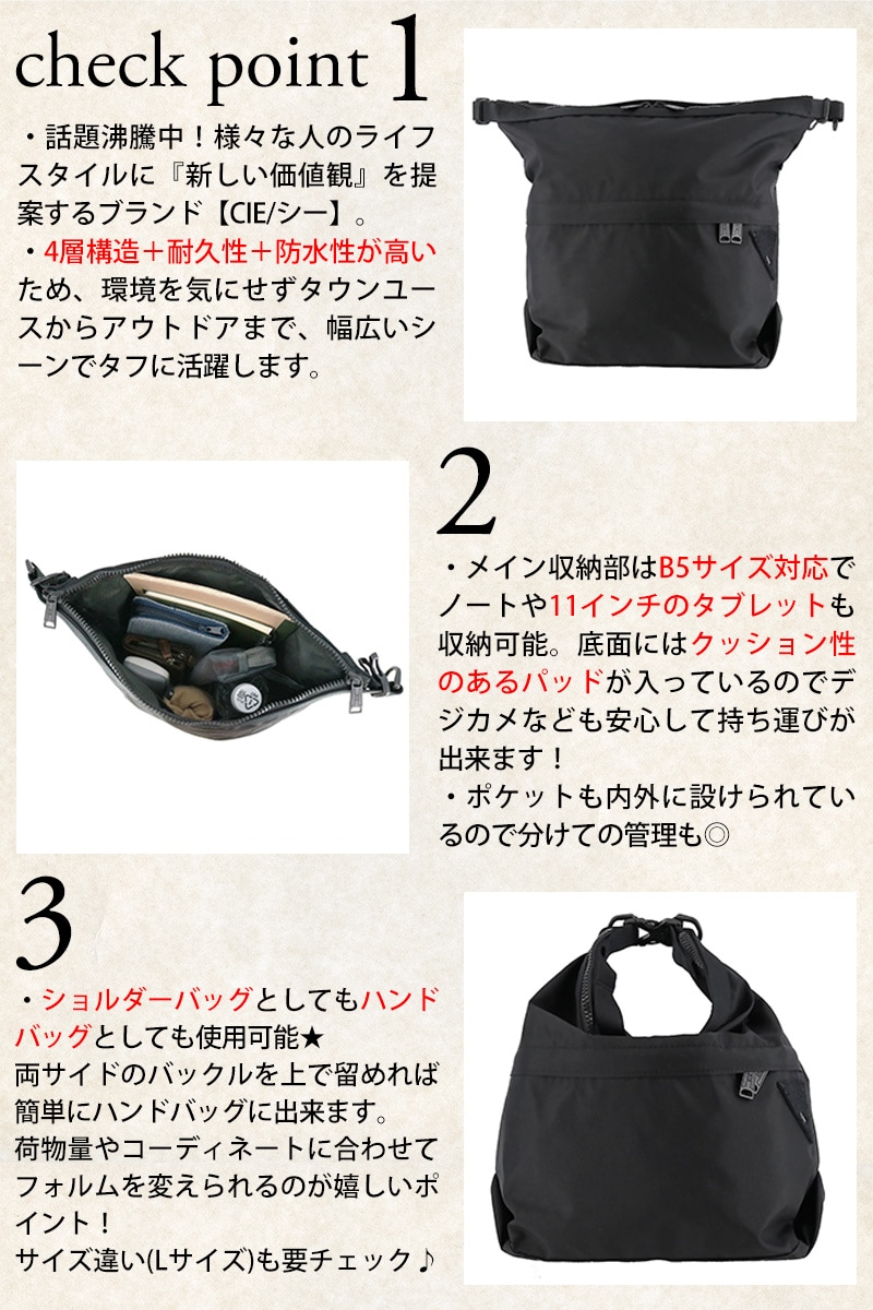 シー バッグ ショルダーバッグ 手提げ 2way 斜め掛け 防水 CIE フロウ ドライショルダーバッグS 13L B5サイズ 022106 メンズ レディース 日本製 プレゼント ギフト 1.ブラック -10ラッピング可能