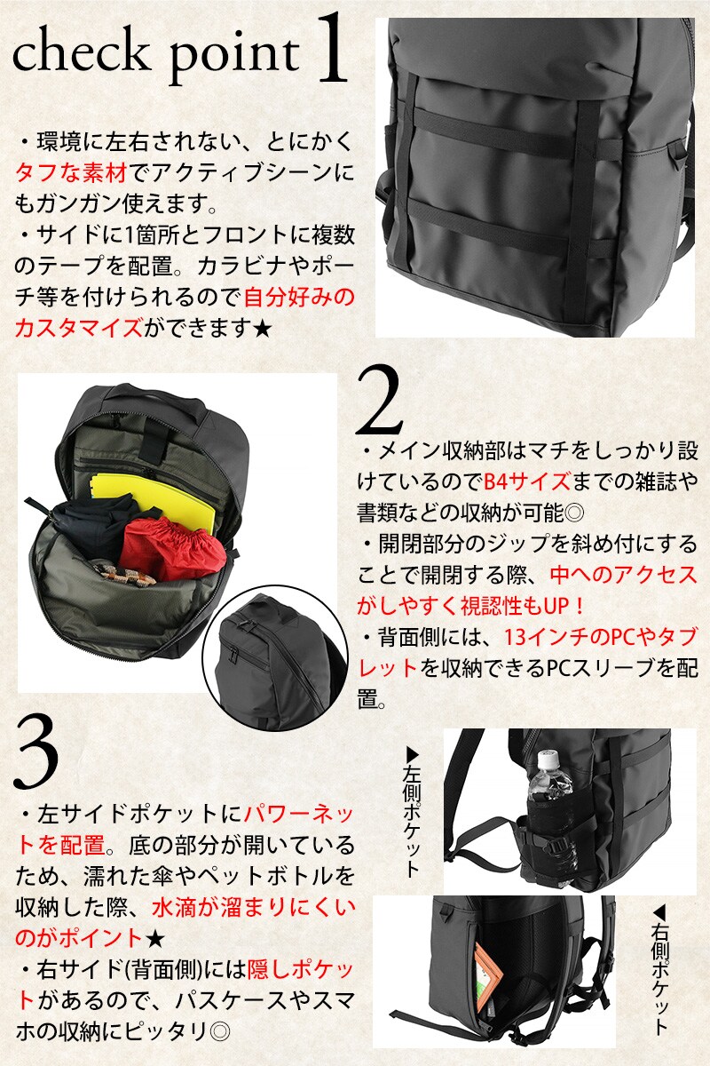 B4サイズ収納可能で、PCポケットもあるためデイリー使いから通勤・通学まで幅広く活躍♪
