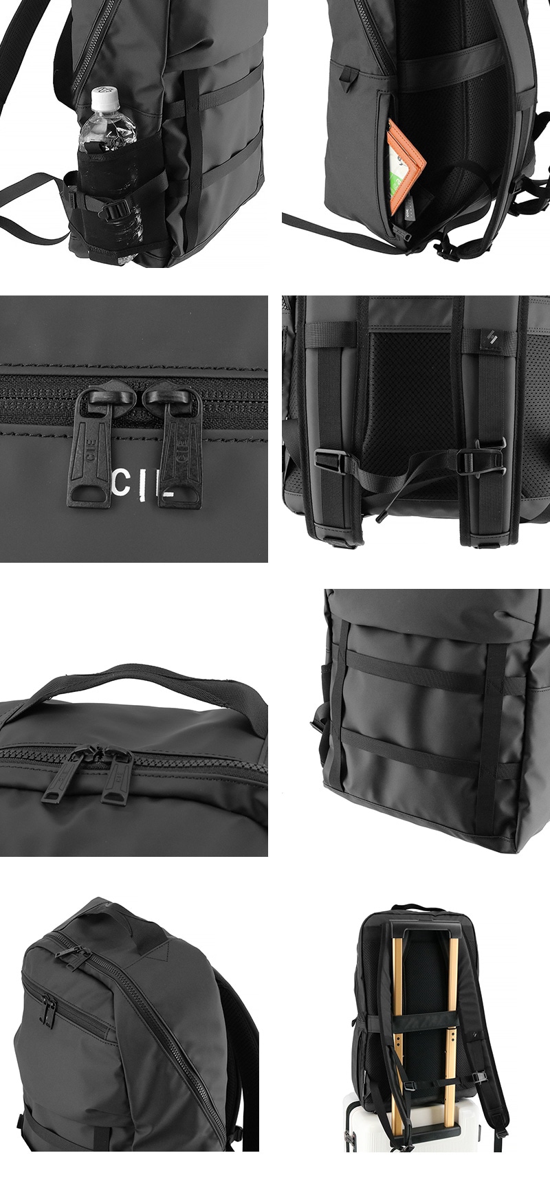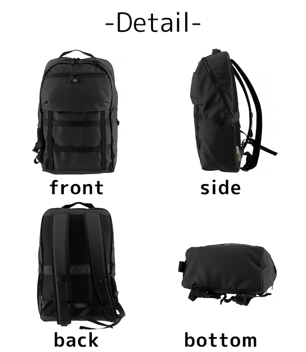 | 素材 | ポリカーボネイト100% / ポリエステル100% / ナイロン100% ※防水性については生地自体の防水機能となり、縫製部分・ファスナーから水が浸入する事がございますので、ご注意ください。 | ||