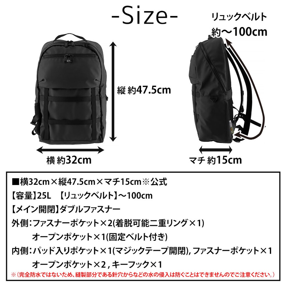 | サイズ(約) ※当店実寸値 | 公式サイズ 横32cm×縦47.5cm×マチ15cm 【リュックベルト】~100cm 【容量】25L | ||
