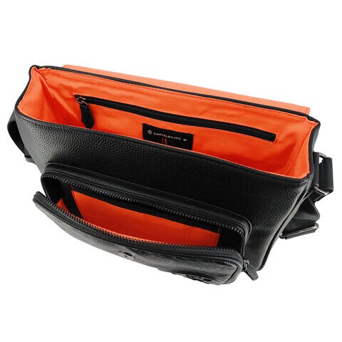 表面は滑らかで程よい光沢感があり、フラップや立体ポケットのデザインを引き立てます。