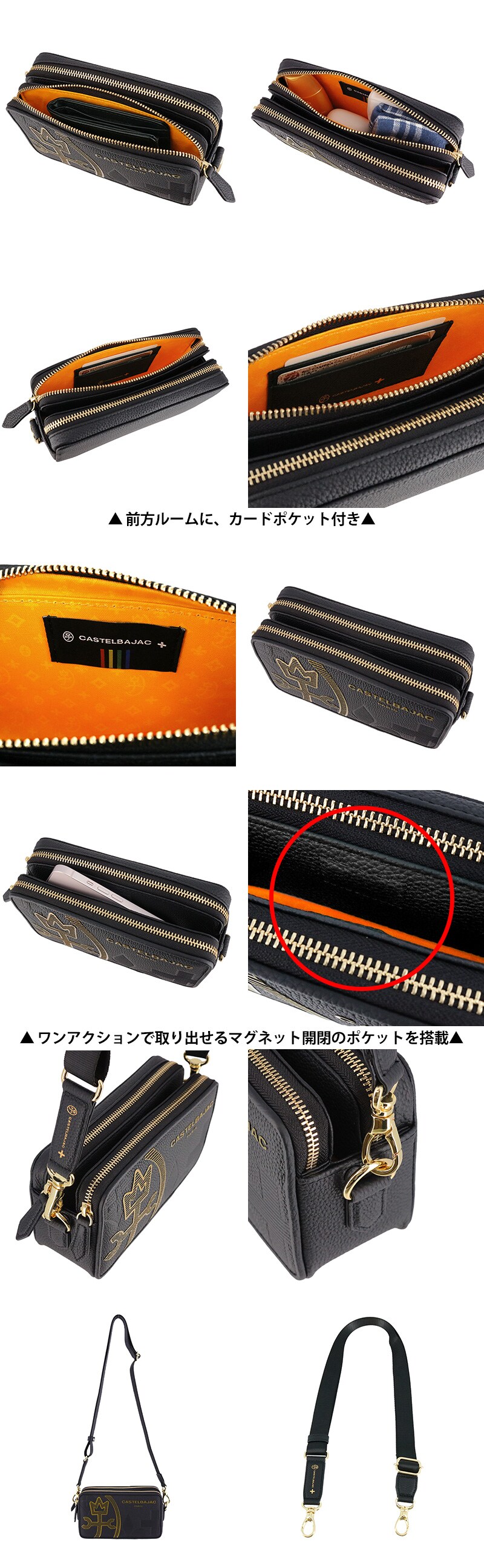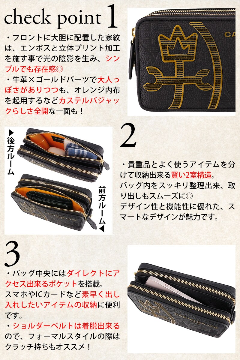 カステルバジャック バッグ ショルダーバッグ 斜めがけバッグ CASTELBAJAC カヌレ ミニショルダーバッグ 35121 メンズ レディース 本革 送料無料 誕生日プレゼント ギフト 【正規代理店】 1.ブラック -blkラッピング可能