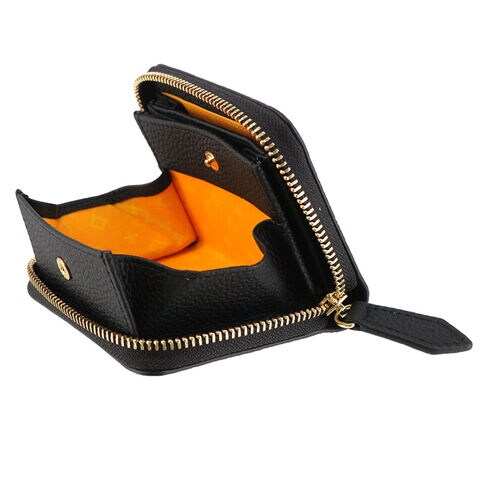 中身をしっかり保護するラウンドファスナー開閉と、小銭を取り出しやすく設計されたボックスタイプの小銭入れを採用しました。