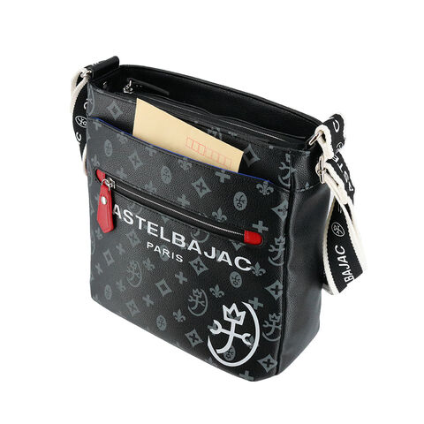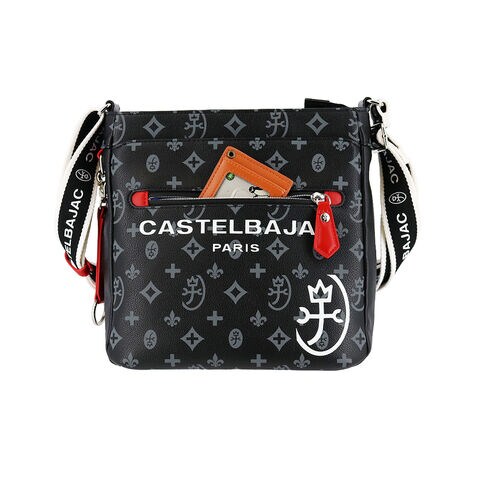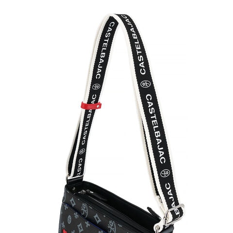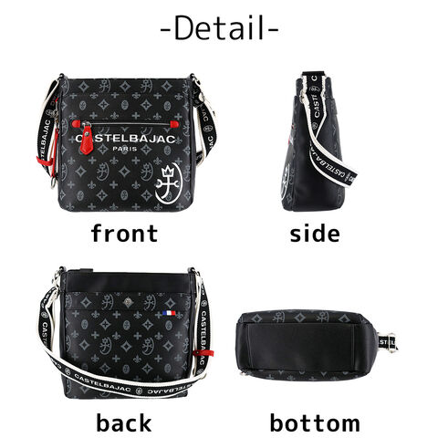 本体素材は、シボ感のある合成皮革を使用し、前面や背面はカステルバジャックオリジナルのモノグラム柄。