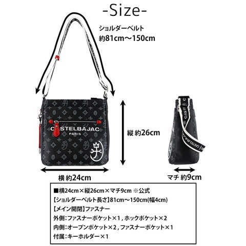 | サイズ(約) ※当店実寸値 | 公式サイズ 横24cm×縦26cm×マチ9cm 【ショルダーベルト】81~150cm(幅4cm) | ||