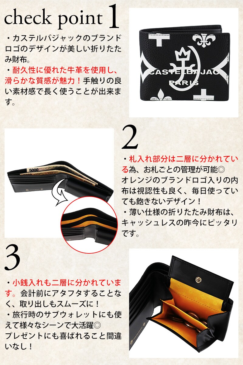 カステルバジャック 財布 二つ折り財布 折財布 CASTELBAJAC クレア 2つ折り財布 68631 メンズ レディース 誕生日プレゼント ギフト【正規代理店】 1.ブラック -blkラッピング可能