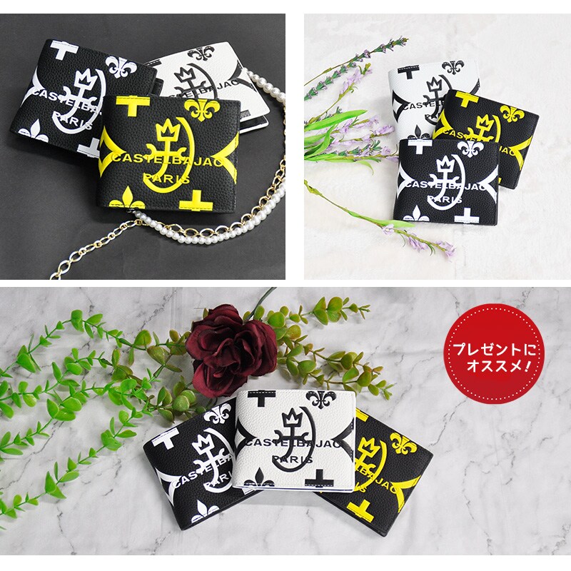 カステルバジャックのモノグラムを大胆にプリントした、二つ折り財布です。