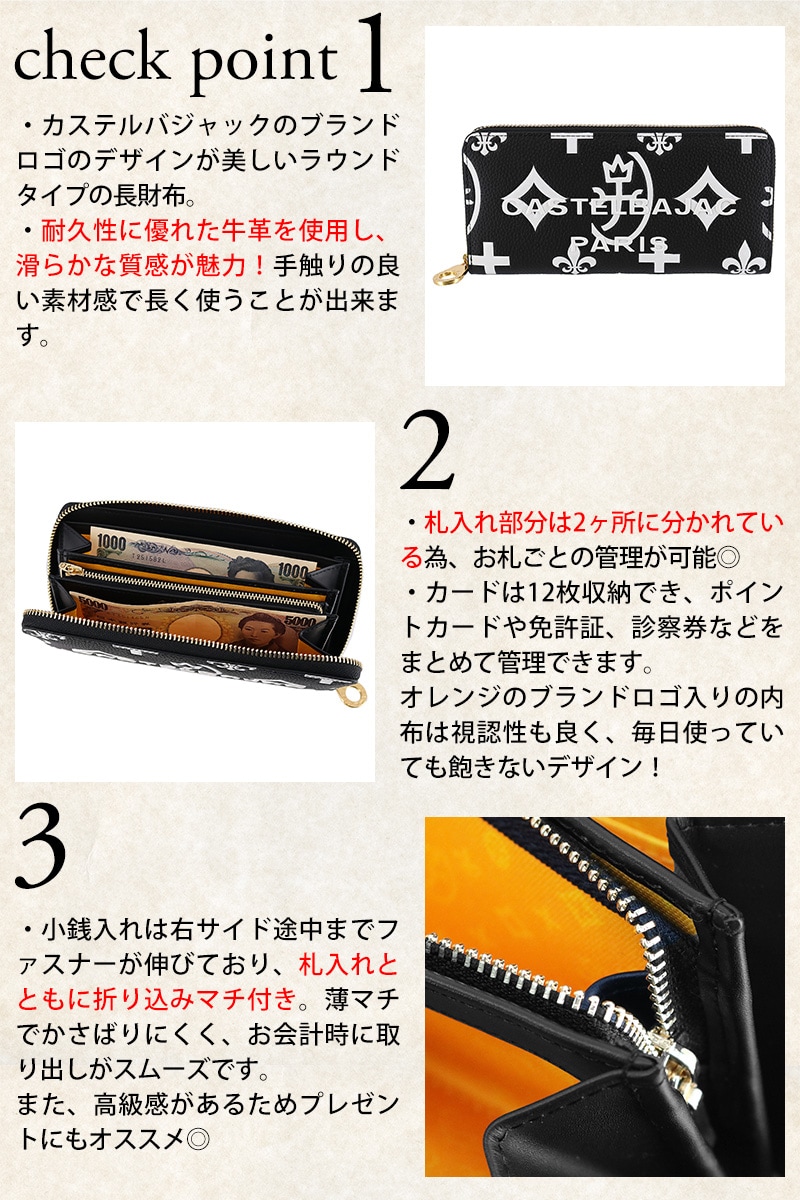 カステルバジャック 財布 バッグ ラウンドファスナー長財布 CASTELBAJAC クレア 長財布 68633 メンズ レディース 誕生日プレゼント ギフト【正規代理店】 2.ホワイト -whtラッピング可能