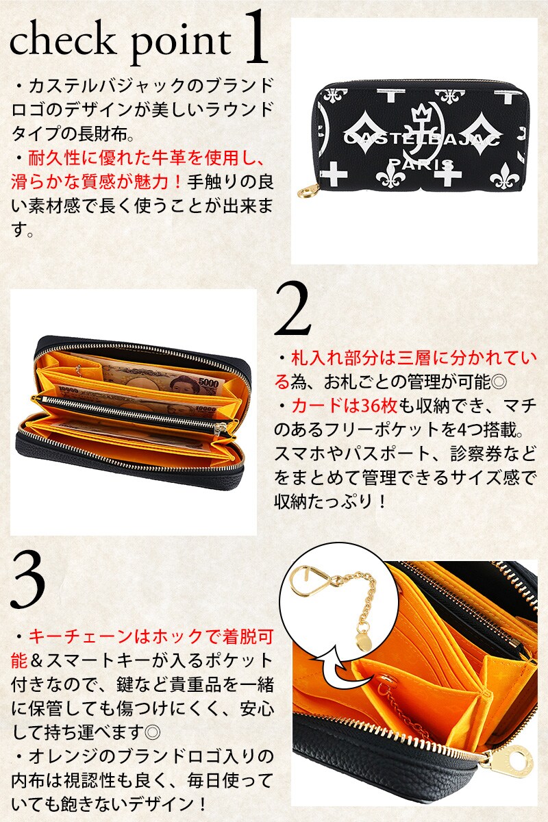 カステルバジャック 財布 ラウンドファスナー長財布 CASTELBAJAC クレア セカンドウォレット 68634 メンズ レディース 誕生日プレゼント ギフト 【正規代理店】 1.ブラック -blkラッピング可能