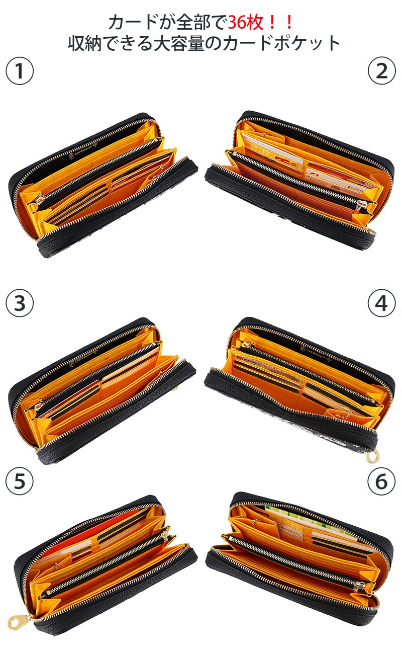 36枚入るカードポケットや、3ヶ所に分けられた札入れなど圧巻の収納力!