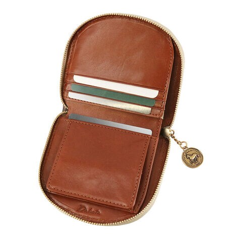 一目で見渡せる内装デザインと、通常の折り財布よりスマートな薄マチ構造が特徴。