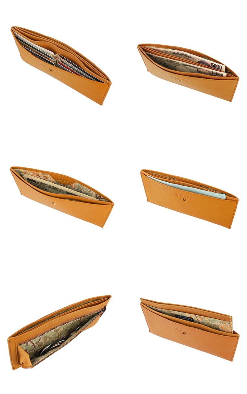 マチのないスタイリッシュな見た目とは裏腹に、小銭入れや札入れなど必要な機能がしっかり設けられています。