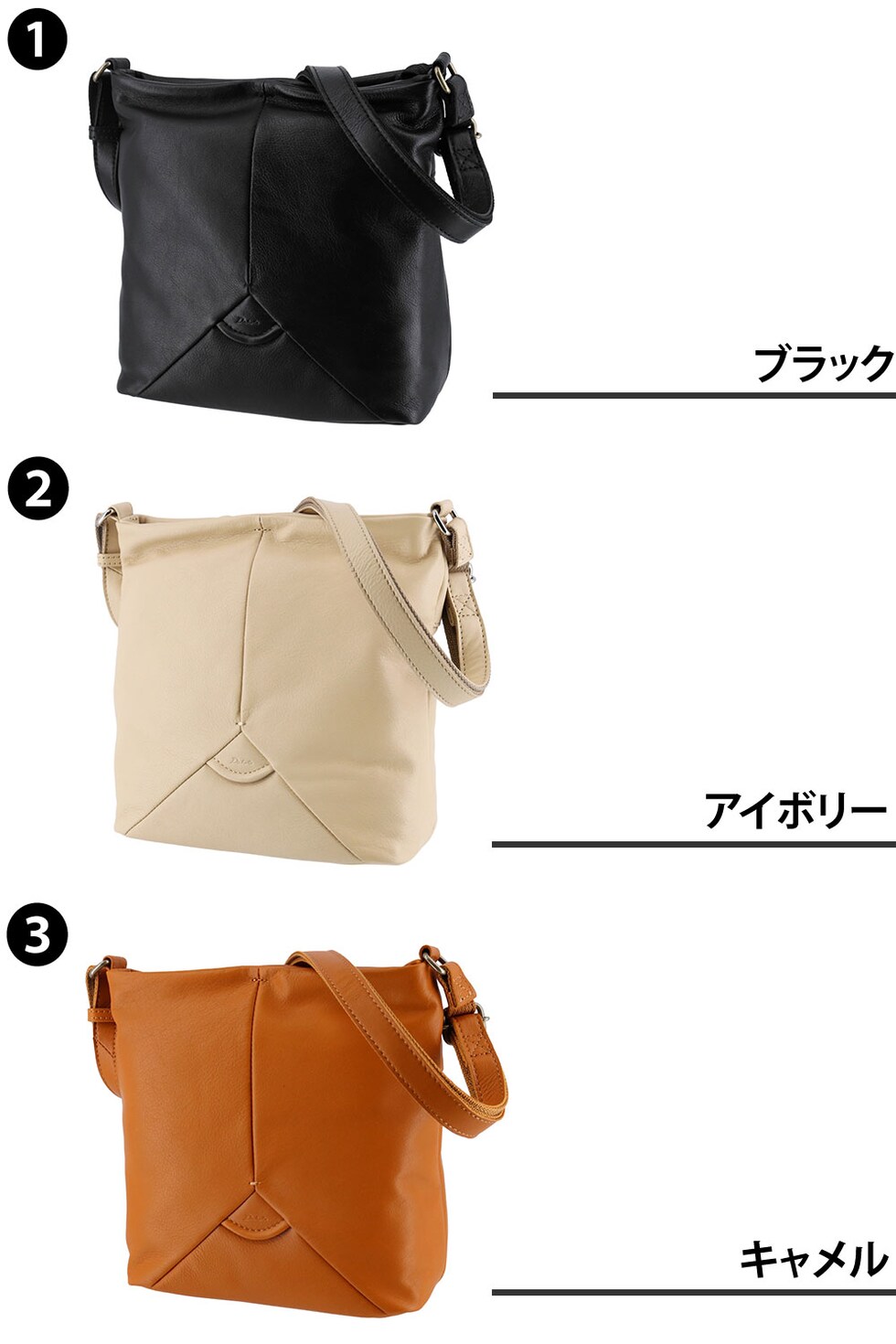 | カラー | 1.ブラック(-10) 2.アイボリー(-21) 3.キャメル(-45) | ||