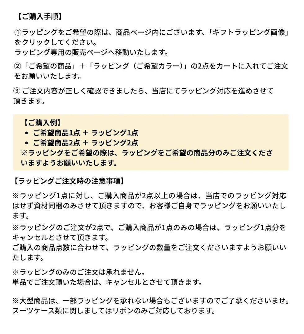 ※大型商品につきましては、サイズの都合上、を承れない場合がございます。あらかじめご了承くださいませ。