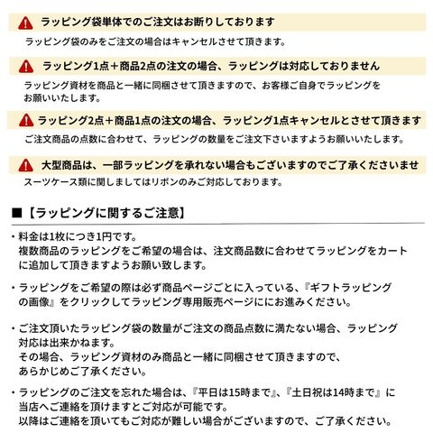 ※大型商品につきましては、サイズの都合上、を承れない場合がございます。あらかじめご了承くださいませ。