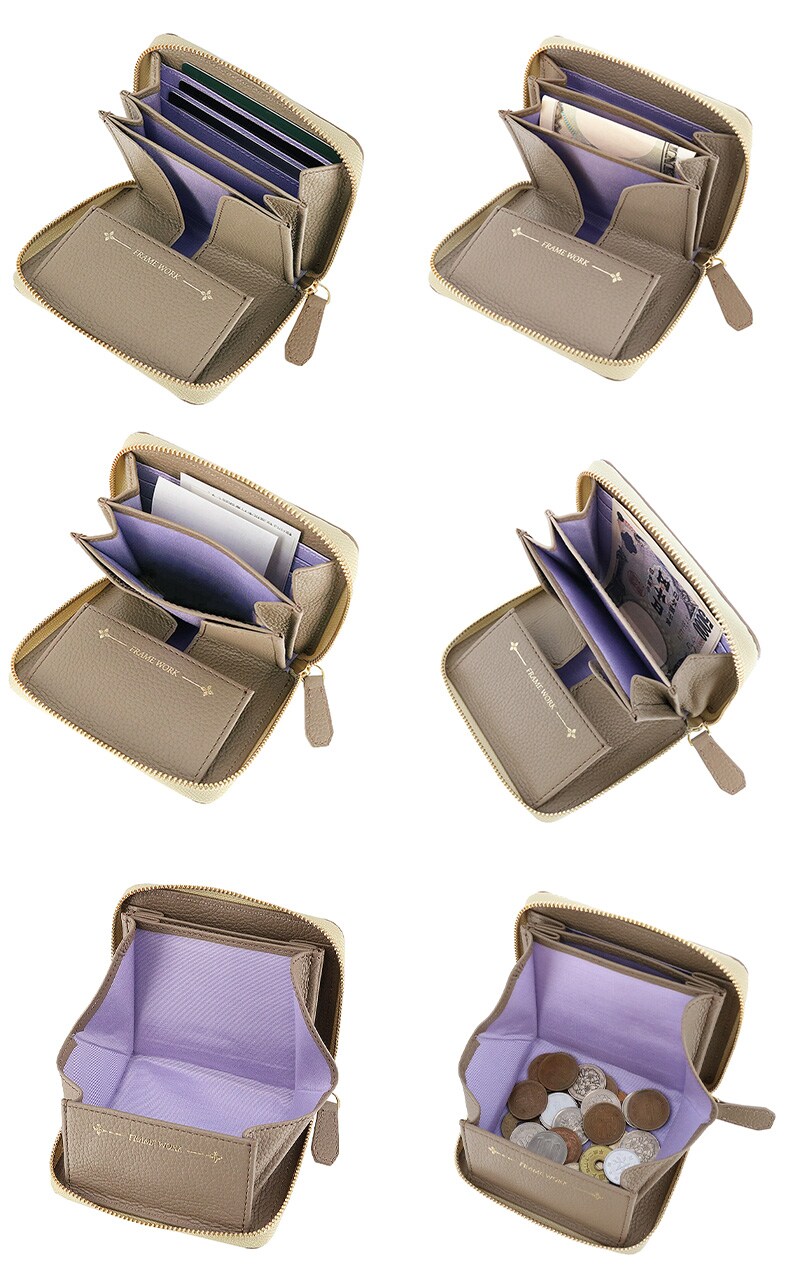 フレームワーク 財布 ファスナー ミニ財布 サイフ 小さめ FRAME WORK クイック 45060 レディース ブランド 牛革 レザー 誕生日プレゼント ギフト 【正規代理店】 5.ラベンダー -64ラッピング可能