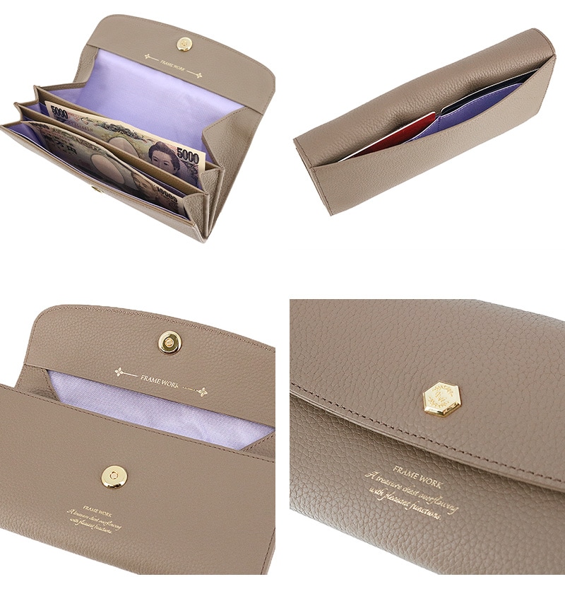 フレームワーク 財布 長財布 かぶせ さいふ サイフ FRAME WORK クイック 45062 レディース ブランド 牛革 レザー 誕生日プレゼント ギフト 【正規代理店】 1.グレージュ -13ラッピング可能