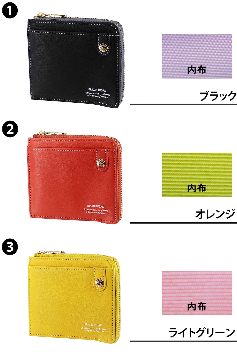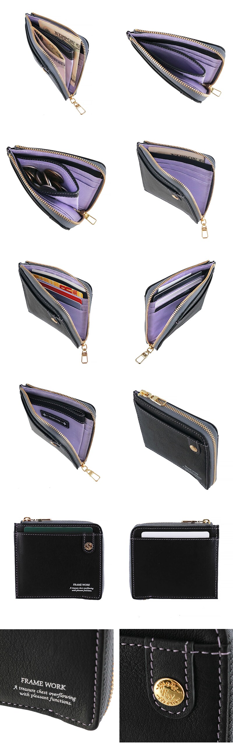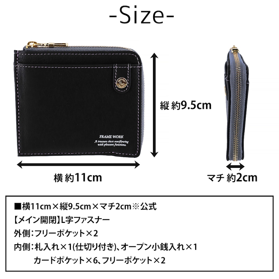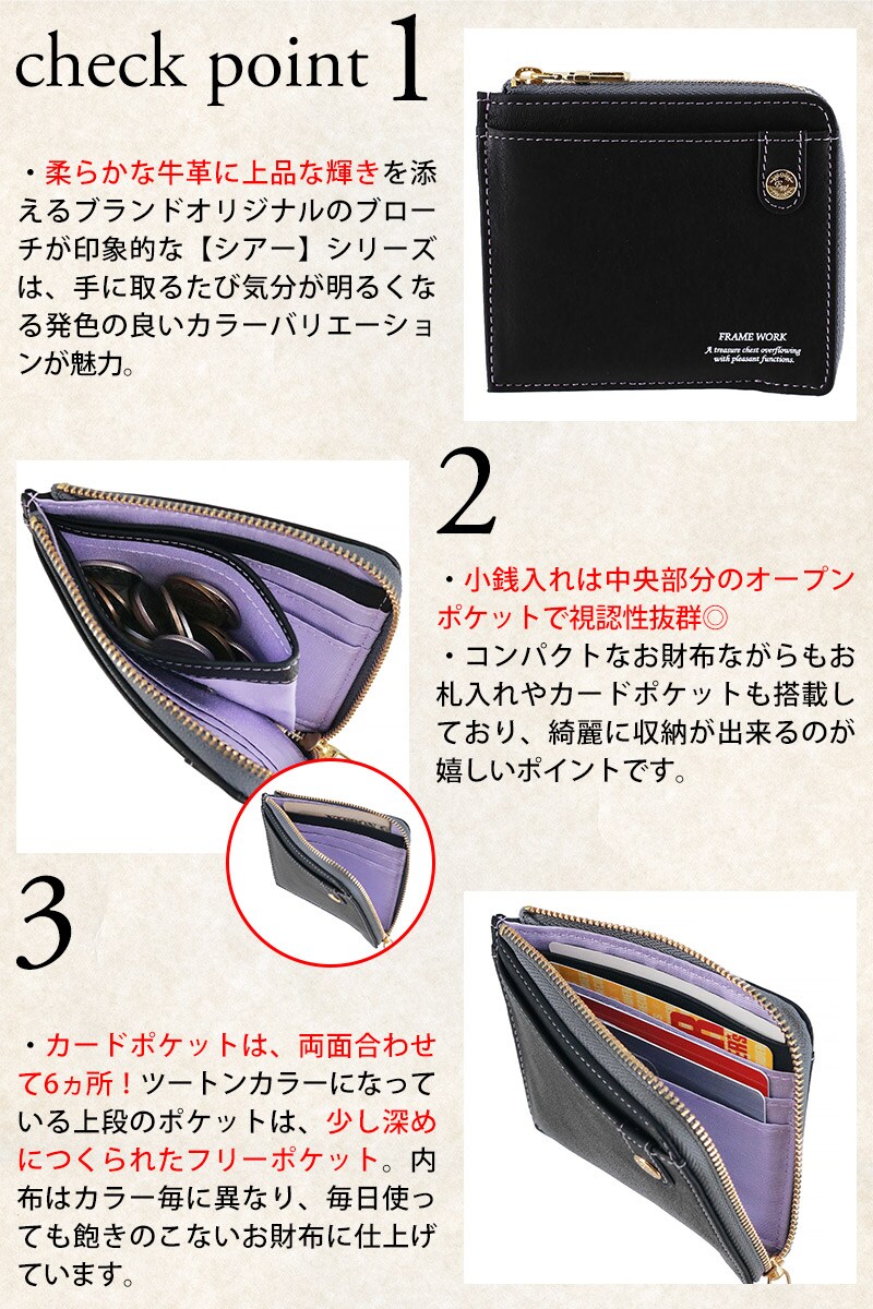 フレームワーク 財布 ミニ財布 本革 L字ファスナー 小銭入れあり FRAME WORK シアー 45080 レディース ブランド 牛革 送料無料 誕生日プレゼント ギフト 【正規代理店】 4.ラベンダー -64ラッピング可能